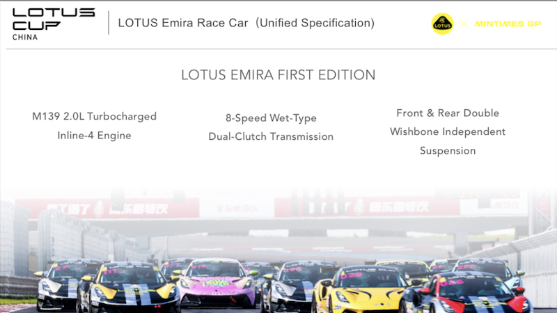 The 2026 Lotus Cup China, featuring the Lotus Emira, is an official one-make racing series running 5 rounds from April to December 2026. The season opener launched in early April 2026 at Sepang International Circuit. Key upcoming events in China include Shanghai (May), Ningbo (June), Wuhan (Oct), and Zhuhai (Dec). The LOTUS CUP CHINA, a single-brand race of Lotus, is hosted by Lotus sports cars and Mintimes Group, co-organized by Chengdu Tianfu International Circuit, Ningbo International Circuit and Wuhan International Circuit, and exclusively operated by Beijing Mintimes Sports Industry Investment Company.